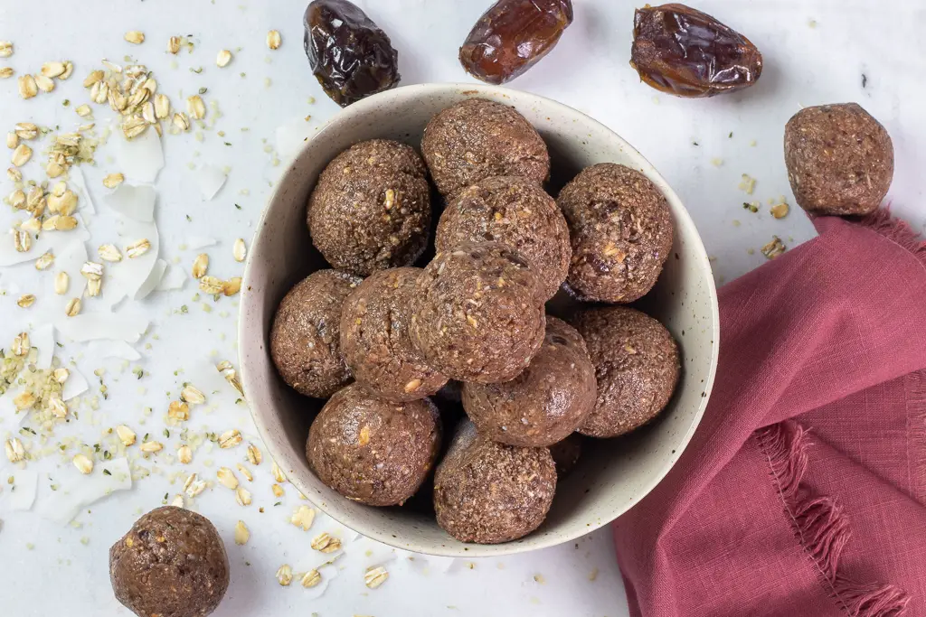 - Once frozen, store bites in an airtight container in the freezer for up to 6 months or the fridge for up to a week.