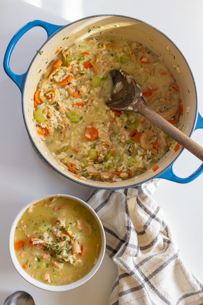 Next, to make it satisfying and reference that delicious classic I’ve enjoyed at diners, I’ve added some rice to this soup.